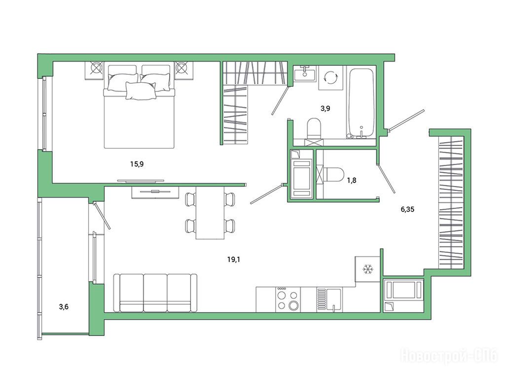 Мы искали двушку, понравилось, что в Ойкумене полноценные изолированные двушки и кухня при этом нормального размера. Расположение с/у также радует. В цену входит отделка, так что цена очень выгодна. Ну и понравились зеленые виды из окна.