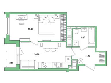 студия 28,15 м2 6 933 345