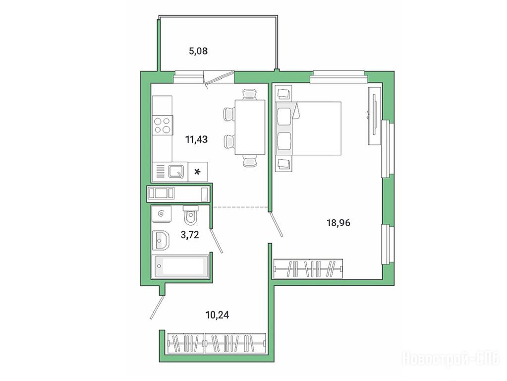 Мы искали двушку, понравилось, что в Ойкумене полноценные изолированные двушки и кухня при этом нормального размера. Расположение с/у также радует. В цену входит отделка, так что цена очень выгодна. Ну и понравились зеленые виды из окна.