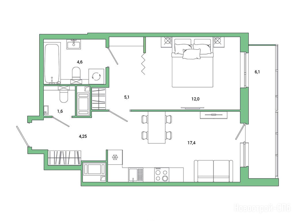 Мы искали двушку, понравилось, что в Ойкумене полноценные изолированные двушки и кухня при этом нормального размера. Расположение с/у также радует. В цену входит отделка, так что цена очень выгодна. Ну и понравились зеленые виды из окна.