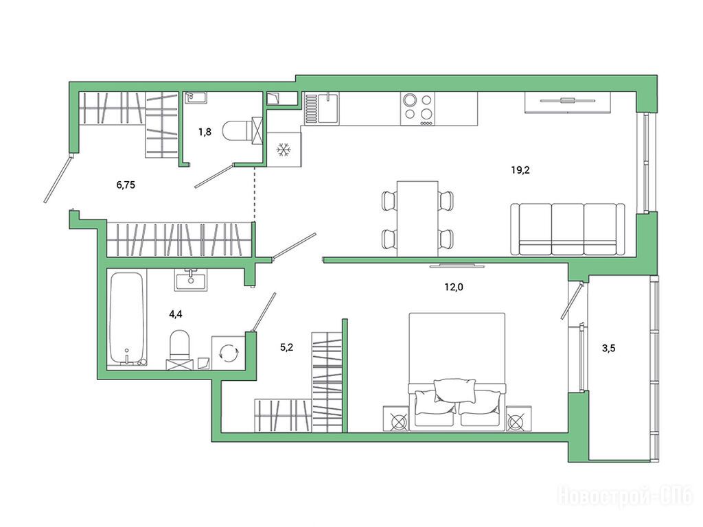 Мы искали двушку, понравилось, что в Ойкумене полноценные изолированные двушки и кухня при этом нормального размера. Расположение с/у также радует. В цену входит отделка, так что цена очень выгодна. Ну и понравились зеленые виды из окна.