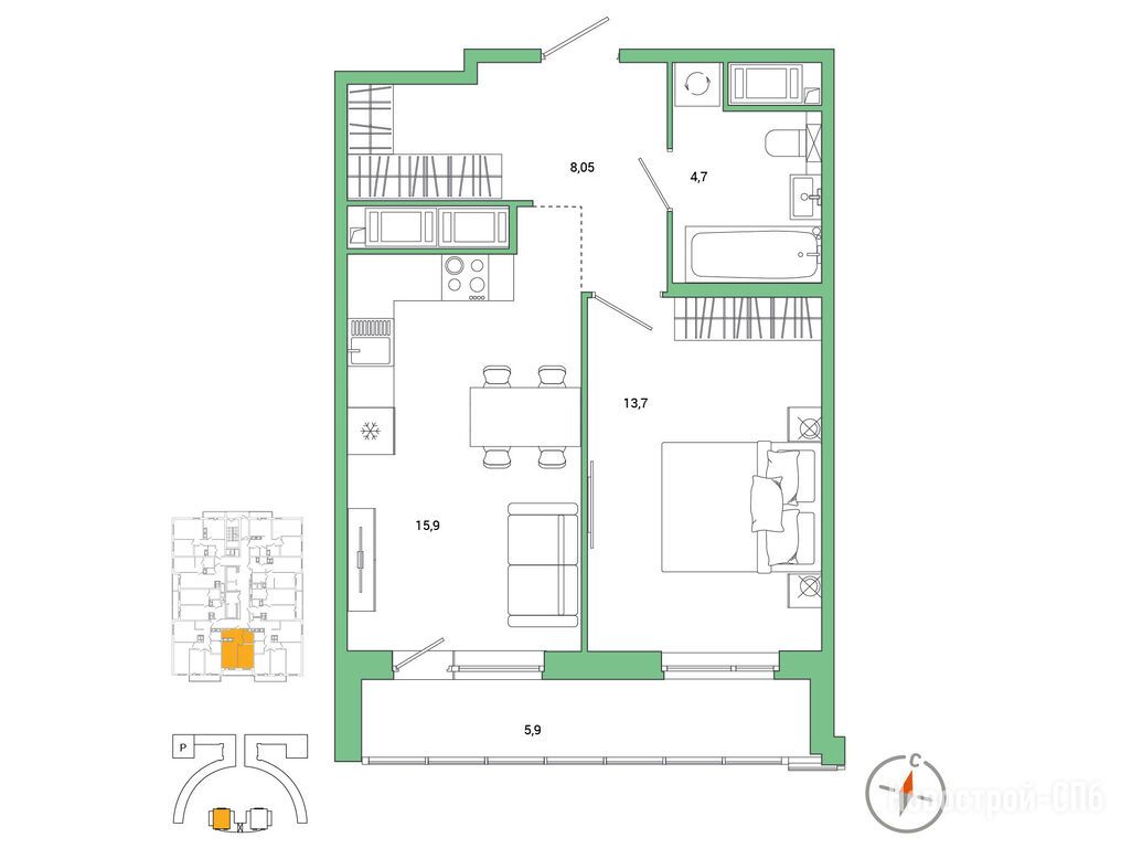 Расположение 1-комн. квартиры