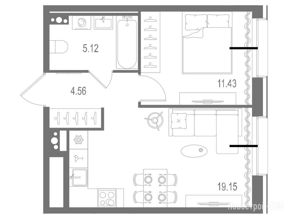 1-комн. квартира 41,19 м2 20 389 050