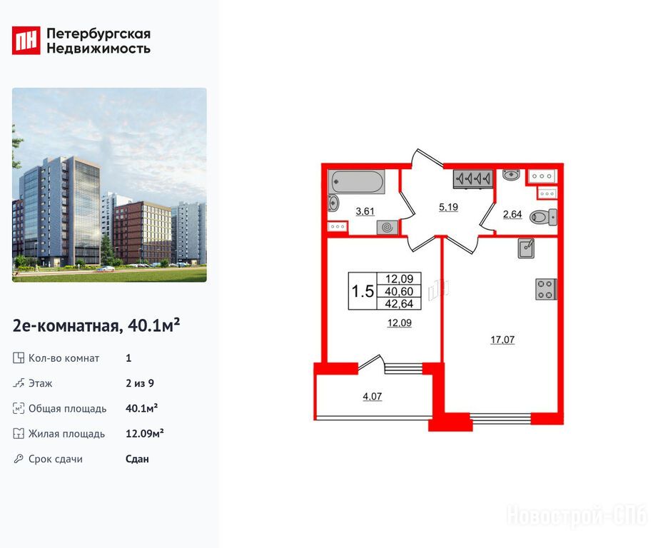 Продается однокомнатная квартира в новостройке ЖК «Панорама Парк Сосновка» по адресу Санкт-Петербург, Выборгский, пр. Светлановский д.14, к.1. Общая площадь квартиры - 40.1 кв. м. Тип проекта, по которому построен дом — Монолитно-кирпичный, компания-застройщик — Setl Group (Сэтл Групп). Стоимость квартиры — 16 450 307 руб. Способы оплаты можно уточнить у продавца. Более подробная информация по телефону.