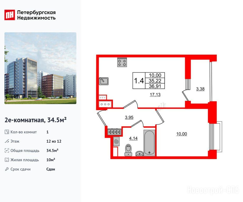 Продается однокомнатная квартира в новостройке ЖК «Панорама Парк Сосновка» по адресу Санкт-Петербург, Выборгский, пр. Светлановский д.14, к.1. Общая площадь квартиры - 34.5 кв. м. Тип проекта, по которому построен дом — Монолитно-кирпичный, компания-застройщик — Setl Group (Сэтл Групп). Стоимость квартиры — 17 250 138 руб. Способы оплаты можно уточнить у продавца. Более подробная информация по телефону.