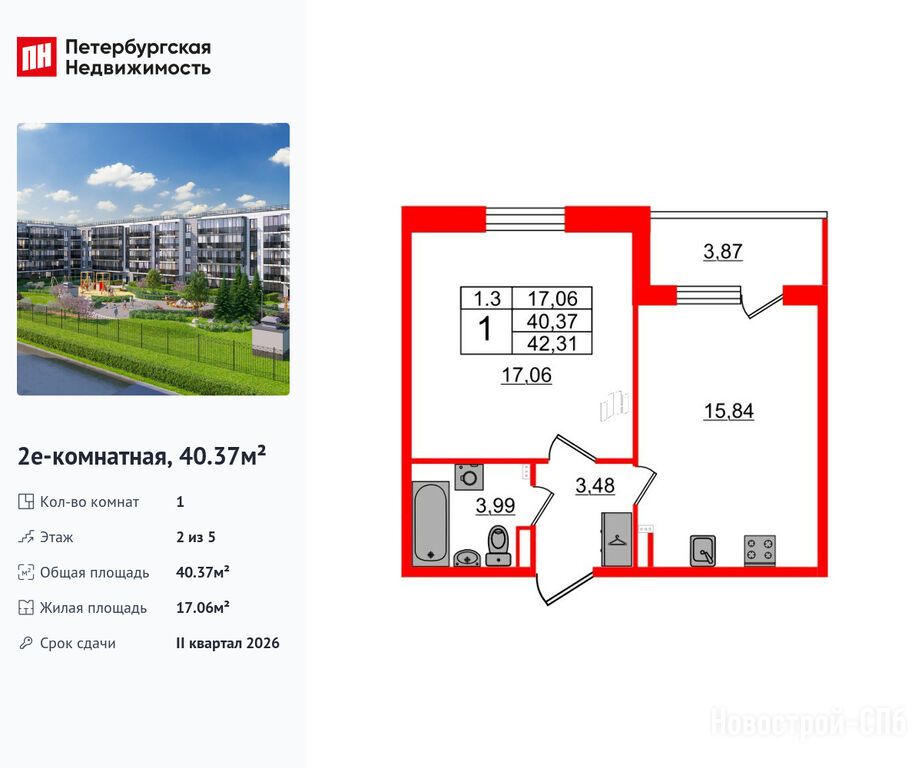 Продается однокомнатная квартира в новостройке ЖК «Парадный ансамбль» по адресу Санкт-Петербург, Московский, Пулковское шоссе, участок 29, корпус 6.3. Общая площадь квартиры - 40.37 кв. м. Тип проекта, по которому построен дом — Монолитно-кирпичный, компания-застройщик — Setl Group (Сэтл Групп). Стоимость квартиры — 9 700 023 руб. Способы оплаты можно уточнить у продавца. Срок сдачи — 2 квартал 2026. Более подробная информация по телефону.