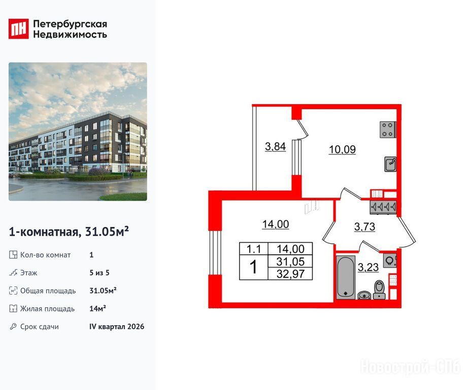 Продается однокомнатная квартира в новостройке ЖК «Парадный ансамбль» по адресу Санкт-Петербург, Московский, Пулковское шоссе 103Х. Общая площадь квартиры - 31.05 кв. м. Тип проекта, по которому построен дом — Монолитно-кирпичный, компания-застройщик — Setl Group (Сэтл Групп). Стоимость квартиры — 7 750 158 руб. Способы оплаты можно уточнить у продавца. Срок сдачи — 1 квартал 2028. Более подробная информация по телефону.