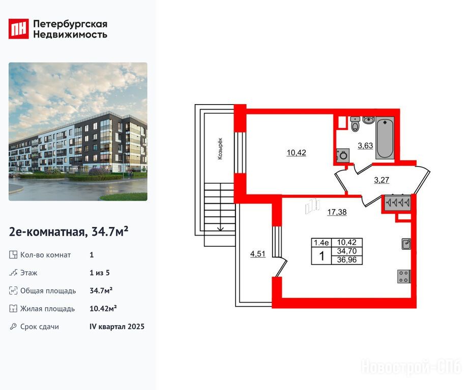 Продается однокомнатная квартира в новостройке ЖК «Парадный ансамбль» по адресу Санкт-Петербург, Московский, Пулковское шоссе, участок 29, корпус 6.5. Общая площадь квартиры - 34.7 кв. м. Тип проекта, по которому построен дом — Монолитно-кирпичный, компания-застройщик — Setl Group (Сэтл Групп). Стоимость квартиры — 8 350 418 руб. Способы оплаты можно уточнить у продавца. Срок сдачи — 2 квартал 2026. Более подробная информация по телефону.