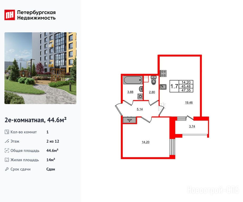 Продается однокомнатная квартира в новостройке ЖК «Прайм Приморский» по адресу Санкт-Петербург, Приморский, Парашютная улица, 71к2. Общая площадь квартиры - 44.6 кв. м. Тип проекта, по которому построен дом — Монолитно-кирпичный, компания-застройщик — Setl Group (Сэтл Групп). Стоимость квартиры — 13 850 039 руб. Способы оплаты можно уточнить у продавца. Более подробная информация по телефону.