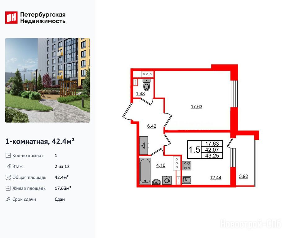 Продается однокомнатная квартира в новостройке ЖК «Прайм Приморский» по адресу Санкт-Петербург, Приморский, Парашютная улица, 71к2. Общая площадь квартиры - 42.4 кв. м. Тип проекта, по которому построен дом — Монолитно-кирпичный, компания-застройщик — Setl Group (Сэтл Групп). Стоимость квартиры — 13 200 010 руб. Способы оплаты можно уточнить у продавца. Более подробная информация по телефону.