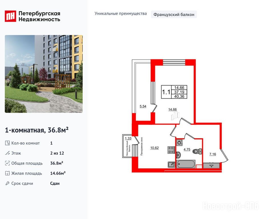 Продается однокомнатная квартира в новостройке ЖК «Прайм Приморский» по адресу Санкт-Петербург, Приморский, Парашютная улица, 71к2. Общая площадь квартиры - 36.8 кв. м. Тип проекта, по которому построен дом — Монолитно-кирпичный, компания-застройщик — Setl Group (Сэтл Групп). Стоимость квартиры — 11 800 067 руб. Способы оплаты можно уточнить у продавца. Более подробная информация по телефону.