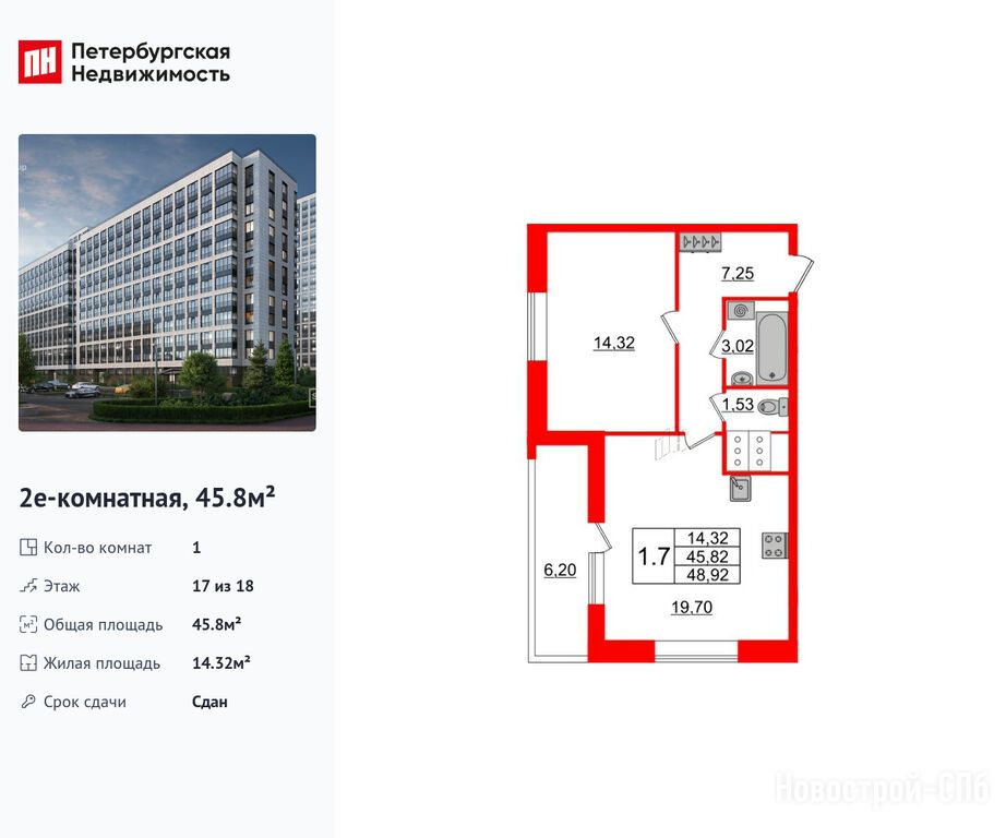 Продается однокомнатная квартира в новостройке ЖК «Пульс Премьер» по адресу Санкт-Петербург, Невский, Архивная улица, 6. Общая площадь квартиры - 45.8 кв. м. Тип проекта, по которому построен дом — Монолитно-кирпичный, компания-застройщик — Setl Group (Сэтл Групп). Стоимость квартиры — 17 250 272 руб. Способы оплаты можно уточнить у продавца. Более подробная информация по телефону.