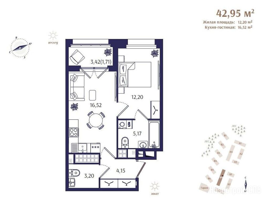 Продается однокомнатная квартира в новостройке ЖК Ranta Residence (Ранта Резиденс) по адресу Санкт-Петербург, Курортный, Зеленогорск, Кривоносовская улица, 57, ЖК Ranta Residence, корпус Б4. Общая площадь квартиры - 42.95 кв. м. , компания-застройщик — LAR Development (ЛАР Девелопмент), Запстрой, СЗ Ранта Резиденс. Стоимость квартиры — 18 468 500 руб. Способы оплаты можно уточнить у продавца. Срок сдачи — 2 квартал 2026. Более подробная информация по телефону.