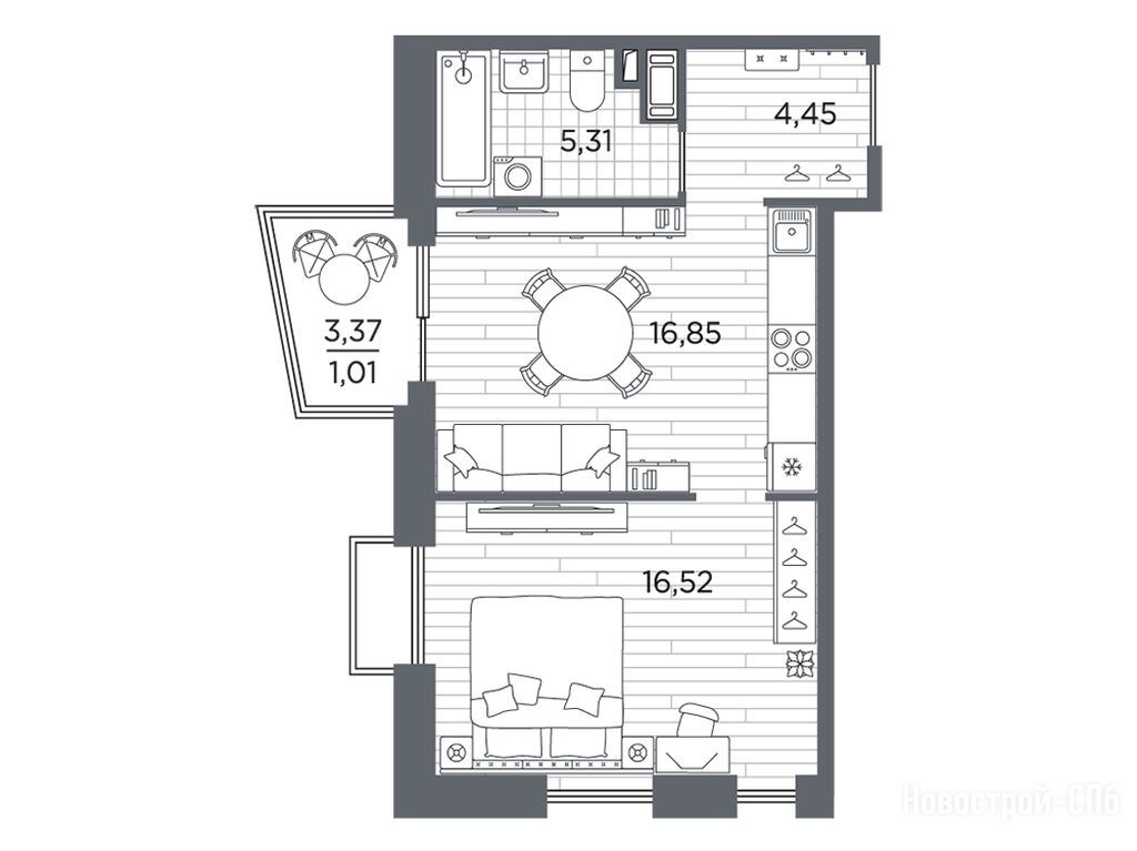 Продается однокомнатная квартира в новостройке ЖК Respect (Респект) по адресу Санкт-Петербург, Калининский, Полюстровский пр., 87. Общая площадь квартиры - 44.14 кв. м. Тип проекта, по которому построен дом — Монолитно-кирпичный, компания-застройщик — ПСК. Стоимость квартиры — 18 077 537 руб. Способы оплаты можно уточнить у продавца. Срок сдачи — 2 квартал 2027. Более подробная информация по телефону.