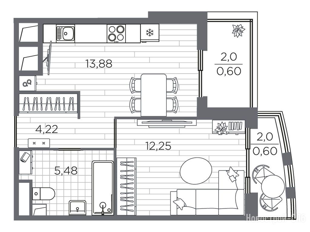 Забронировали трехкомнатную квартиру со светлой отделкой. Два сан узла, балкон, кухня-гостиная почти 19,м2. Понравилась идея с общественными террасами. Там посадят кустарники, обустроят лаунж-зоны, поставят столики, стулья. Можно будет и погулять и поработать