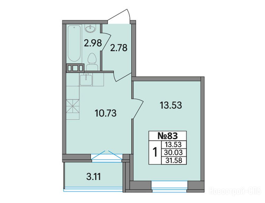 1-комн. квартира 31,00 м2 6 696 000