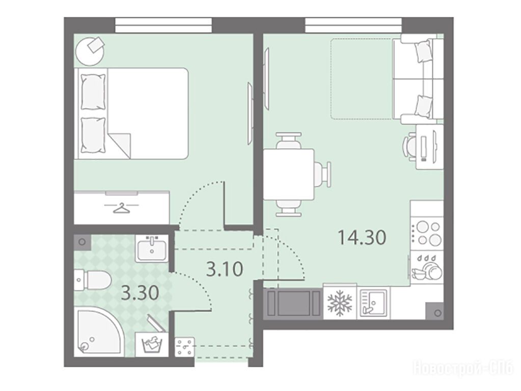 1-комн. квартира 30,30 м2 6 779 322