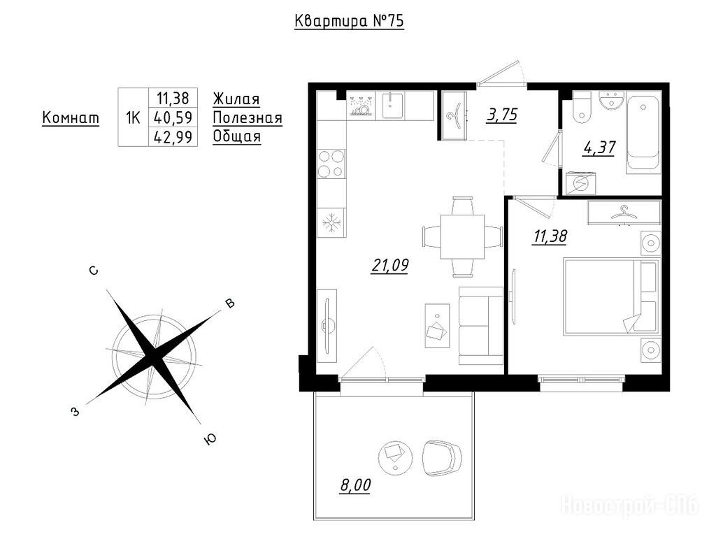Продается однокомнатная квартира в новостройке ЖК «Счастье 2.0» по адресу Ленинградская область, Тосненский район, Федоровское, Счастливая улица, 5к1. Общая площадь квартиры - 42.99 кв. м. Тип проекта, по которому построен дом — Монолит, компания-застройщик — ЛенСтройГрад. Стоимость квартиры — 6 026 123 руб. Способы оплаты можно уточнить у продавца. Более подробная информация по телефону.