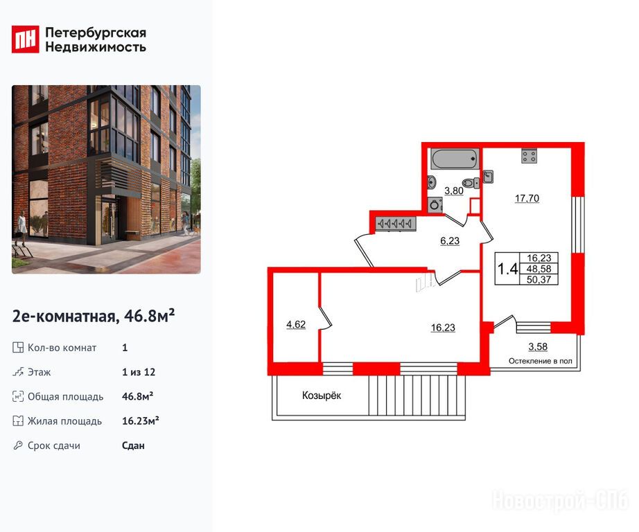 Продается однокомнатная квартира в новостройке ЖК «Сенат в Московском» по адресу Санкт-Петербург, Московский, Кубинская улица, 76к1. Общая площадь квартиры - 46.8 кв. м. Тип проекта, по которому построен дом — Монолитно-кирпичный, компания-застройщик — Setl Group (Сэтл Групп). Стоимость квартиры — 16 400 101 руб. Способы оплаты можно уточнить у продавца. Более подробная информация по телефону.