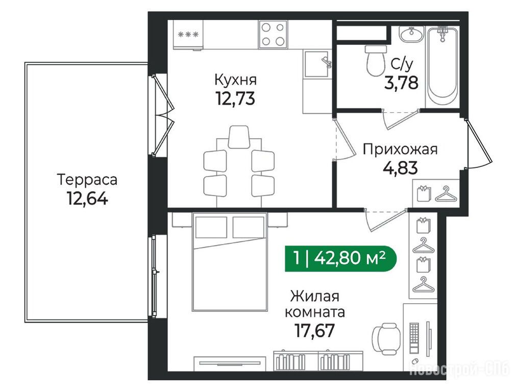 Продается однокомнатная квартира в новостройке ЖК «Сертолово Парк» (SERTOLOVO PARK) по адресу Ленинградская область, Всеволожский район, г. Сертолово, мкрн Сертолово-1, терр. вблизи Выборгского ш., уч. 12, 13, 15, 16. Общая площадь квартиры - 42.8 кв. м. Тип проекта, по которому построен дом — Монолитно-каркасный, компания-застройщик — Алгоритм Девелопмент. Стоимость квартиры — 8 217 600 руб. Способы оплаты можно уточнить у продавца. Срок сдачи — 2 квартал 2027. Более подробная информация по телефону.