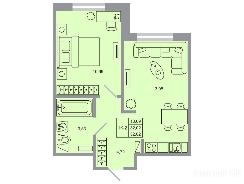 1-комн. квартира 32,06 м2 4 776 940