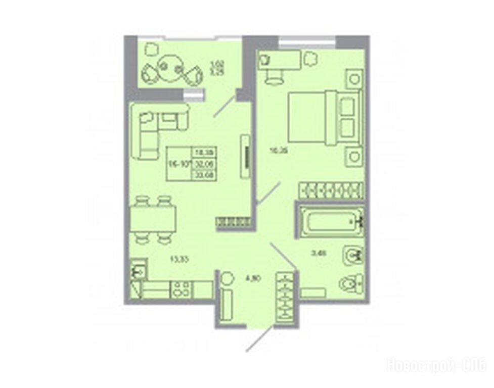 1-комн. квартира 32,06 м2 4 776 940