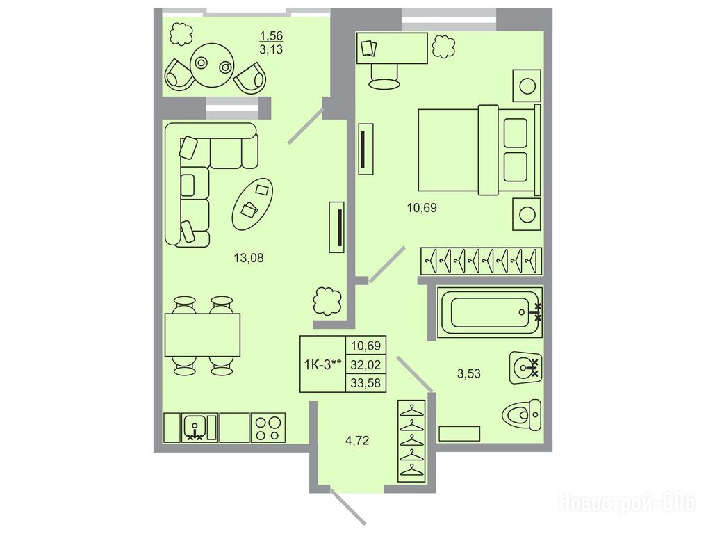 1-комн. квартира 32,02 м2 5 027 140