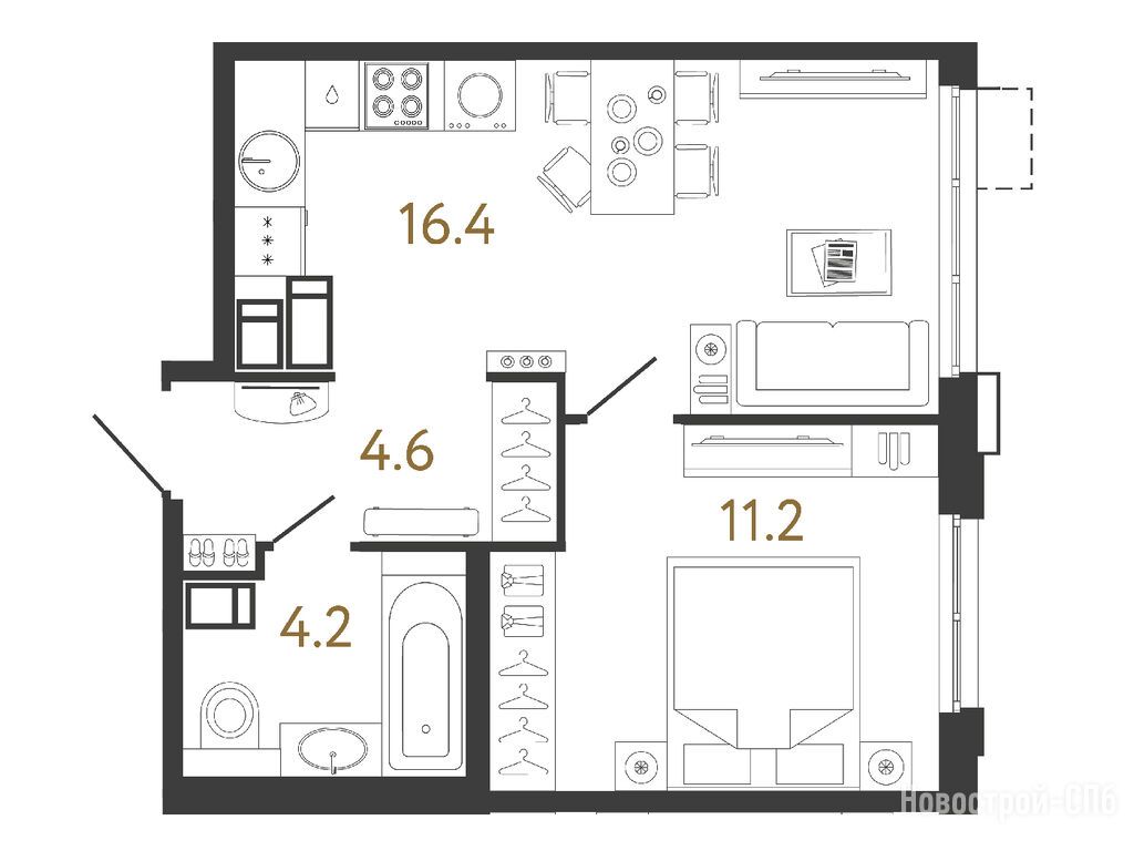 Купила себе свое первое жилье - однушку в Струнах. Выбирала по локации и планировке. Самое главное что есть большая кухня, больше 20 метров. Просто не понимаю, когда кухня маленькая, где принимать гостей, не в спальне же… а так пространство зонировано, по проекту половина кухни предназначена для приема пищи и отдыха, половина - для приготовления еды.