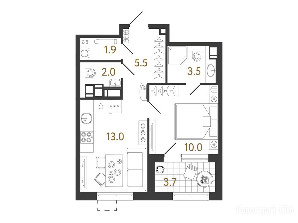 Купила себе свое первое жилье - однушку в Струнах. Выбирала по локации и планировке. Самое главное что есть большая кухня, больше 20 метров. Просто не понимаю, когда кухня маленькая, где принимать гостей, не в спальне же… а так пространство зонировано, по проекту половина кухни предназначена для приема пищи и отдыха, половина - для приготовления еды.