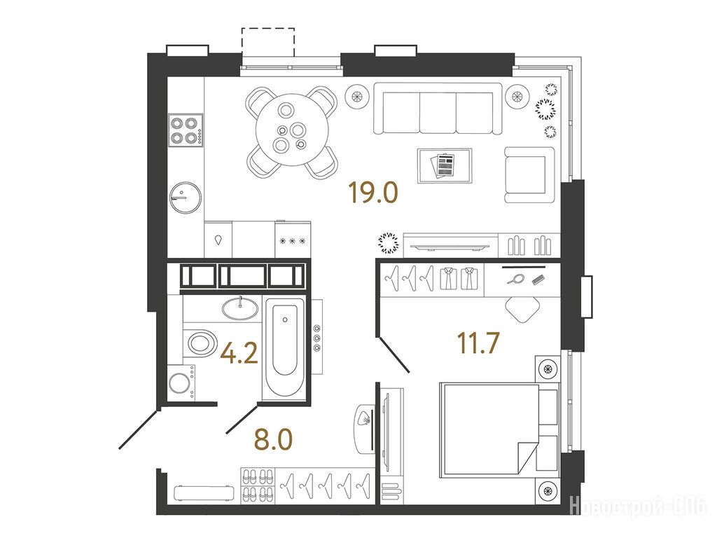 Купила себе свое первое жилье - однушку в Струнах. Выбирала по локации и планировке. Самое главное что есть большая кухня, больше 20 метров. Просто не понимаю, когда кухня маленькая, где принимать гостей, не в спальне же… а так пространство зонировано, по проекту половина кухни предназначена для приема пищи и отдыха, половина - для приготовления еды.