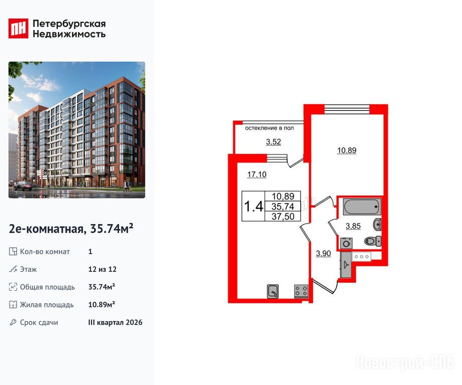 Продается однокомнатная квартира в новостройке ЖК «Титул в Московском» по адресу Санкт-Петербург, Московский, ул. Кубинская, ЖК «Титул в Московском», корпус 1.1. Общая площадь квартиры - 35.74 кв. м. Тип проекта, по которому построен дом — Монолитно-кирпичный, компания-застройщик — Setl Group (Сэтл Групп), ООО «Новый элемент». Стоимость квартиры — 14 500 200 руб. Способы оплаты можно уточнить у продавца. Срок сдачи — 3 квартал 2026. Более подробная информация по телефону.