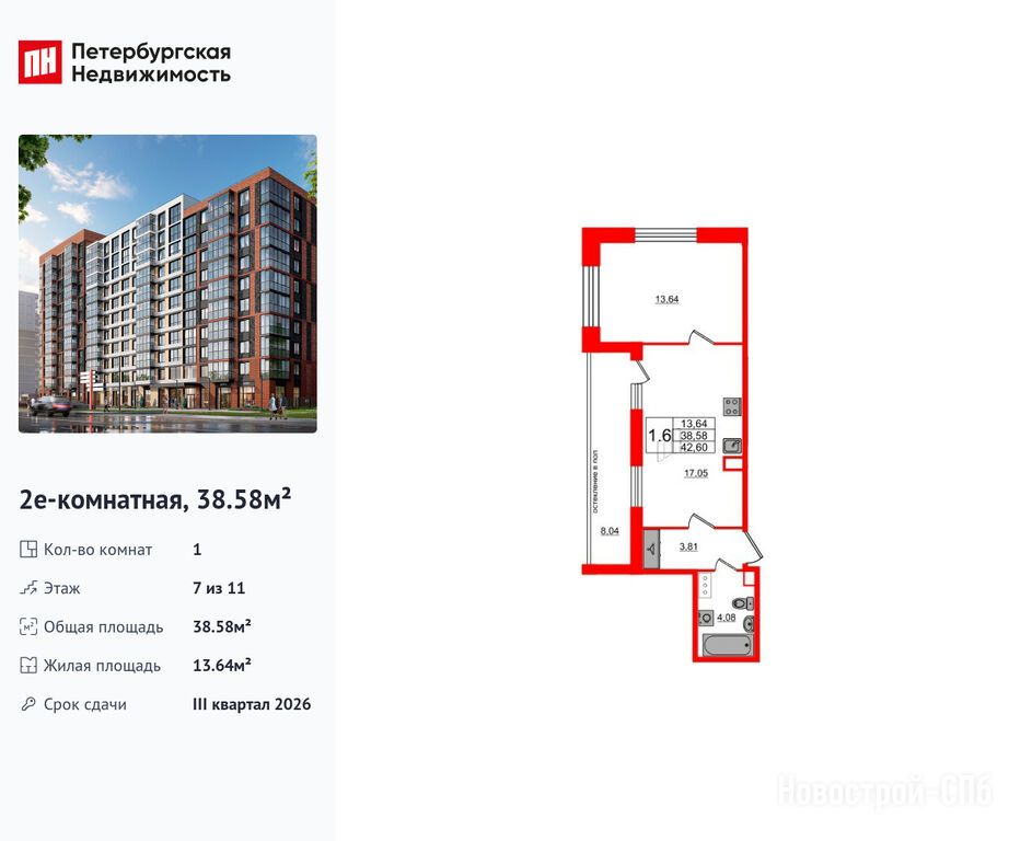 Продается однокомнатная квартира в новостройке ЖК «Титул в Московском» по адресу Санкт-Петербург, Московский, ул. Кубинская, ЖК «Титул в Московском», корпус 1.1. Общая площадь квартиры - 38.58 кв. м. Тип проекта, по которому построен дом — Монолитно-кирпичный, компания-застройщик — Setl Group (Сэтл Групп), ООО «Новый элемент». Стоимость квартиры — 14 900 155 руб. Способы оплаты можно уточнить у продавца. Срок сдачи — 3 квартал 2026. Более подробная информация по телефону.