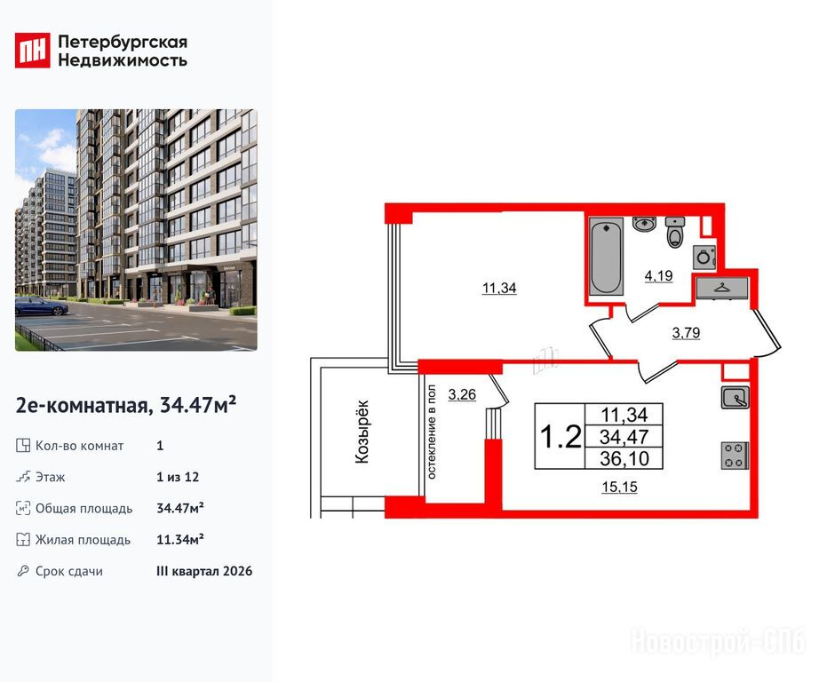 Продается однокомнатная квартира в новостройке ЖК «Титул в Московском» по адресу Санкт-Петербург, Московский, ул. Кубинская, ЖК «Титул в Московском», корпус 1.1. Общая площадь квартиры - 34.47 кв. м. Тип проекта, по которому построен дом — Монолитно-кирпичный, компания-застройщик — Setl Group (Сэтл Групп), ООО «Новый элемент». Стоимость квартиры — 12 400 134 руб. Способы оплаты можно уточнить у продавца. Срок сдачи — 3 квартал 2026. Более подробная информация по телефону.