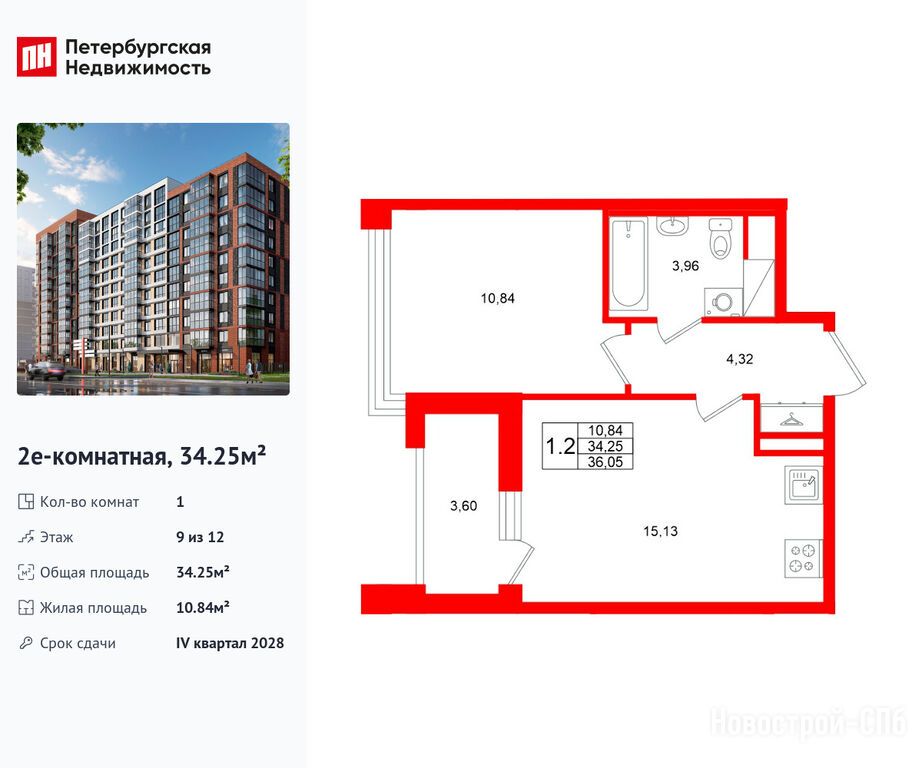 Продается однокомнатная квартира в новостройке ЖК «Титул в Московском» по адресу Санкт-Петербург, Московский, ул. Кубинская, ЖК «Титул в Московском», корпус 2. Общая площадь квартиры - 34.25 кв. м. Тип проекта, по которому построен дом — Монолитно-кирпичный, компания-застройщик — Setl Group (Сэтл Групп), ООО «Новый элемент». Стоимость квартиры — 12 100 028 руб. Способы оплаты можно уточнить у продавца. Срок сдачи — 4 квартал 2028. Более подробная информация по телефону.