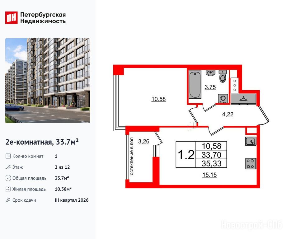 Продается однокомнатная квартира в новостройке ЖК «Титул в Московском» по адресу Санкт-Петербург, Московский, ул. Кубинская, ЖК «Титул в Московском», корпус 1.1. Общая площадь квартиры - 33.7 кв. м. Тип проекта, по которому построен дом — Монолитно-кирпичный, компания-застройщик — Setl Group (Сэтл Групп), ООО «Новый элемент». Стоимость квартиры — 13 350 060 руб. Способы оплаты можно уточнить у продавца. Срок сдачи — 3 квартал 2026. Более подробная информация по телефону.