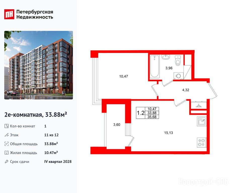 Продается однокомнатная квартира в новостройке ЖК «Титул в Московском» по адресу Санкт-Петербург, Московский, ул. Кубинская, ЖК «Титул в Московском», корпус 2. Общая площадь квартиры - 33.88 кв. м. Тип проекта, по которому построен дом — Монолитно-кирпичный, компания-застройщик — Setl Group (Сэтл Групп), ООО «Новый элемент». Стоимость квартиры — 12 100 056 руб. Способы оплаты можно уточнить у продавца. Срок сдачи — 4 квартал 2028. Более подробная информация по телефону.