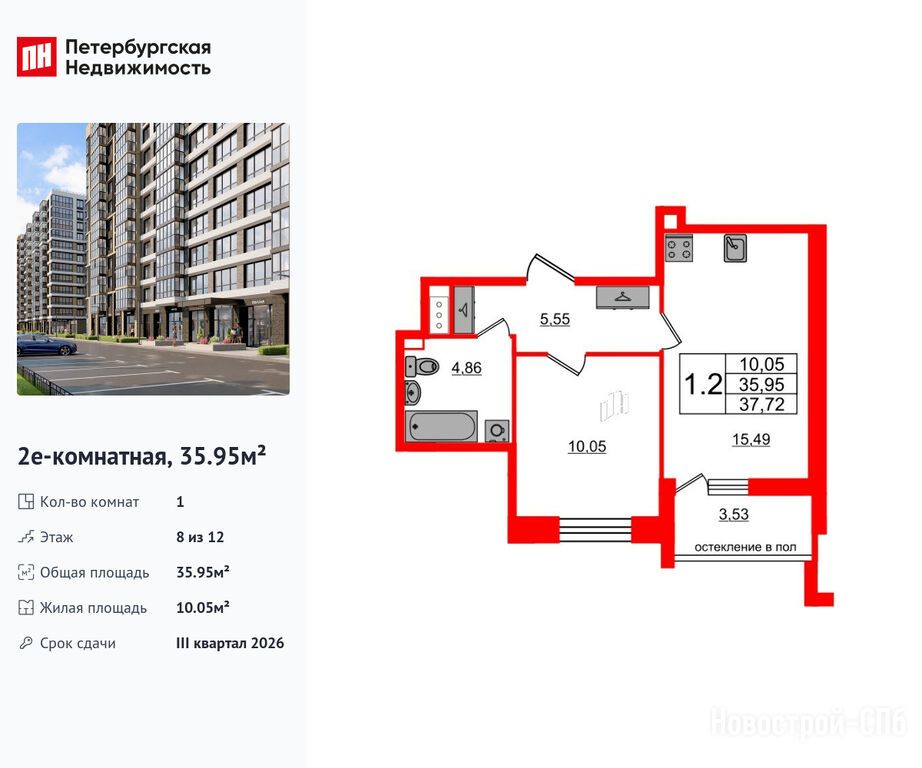 Продается однокомнатная квартира в новостройке ЖК «Титул в Московском» по адресу Санкт-Петербург, Московский, ул. Кубинская, ЖК «Титул в Московском», корпус 1.1. Общая площадь квартиры - 35.95 кв. м. Тип проекта, по которому построен дом — Монолитно-кирпичный, компания-застройщик — Setl Group (Сэтл Групп), ООО «Новый элемент». Стоимость квартиры — 13 750 172 руб. Способы оплаты можно уточнить у продавца. Срок сдачи — 3 квартал 2026. Более подробная информация по телефону.