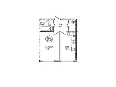 1-комн. квартира 40,53 м2 10 600 000