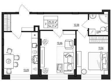 Планировки квартир от небольших, но комфортных студий до просторных двухкомнатных квартир продуманы до мелочей. Покупателям предлагаются как традиционные планировки, так и квартиры формата «Евро» с кухнями-гостиными. Для молодых семей специально разработаны уютные однокомнатные квартиры, где пространство разделено на гостиную и спальную зоны.