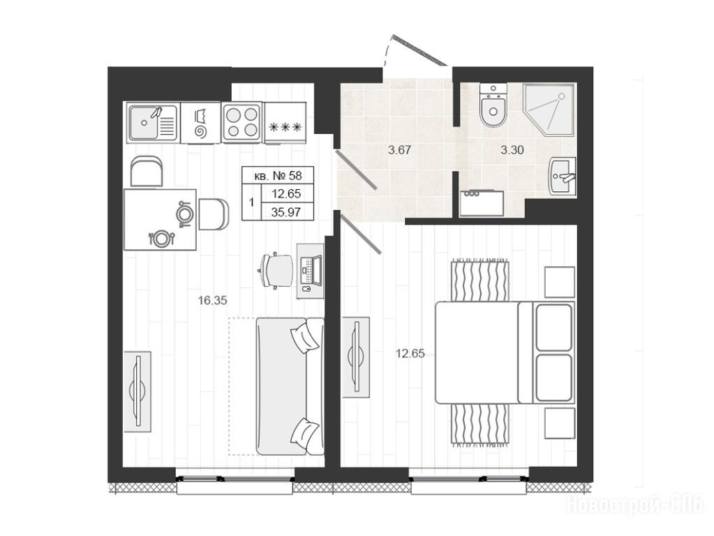 Планировки квартир от небольших, но комфортных студий до просторных двухкомнатных квартир продуманы до мелочей. Покупателям предлагаются как традиционные планировки, так и квартиры формата «Евро» с кухнями-гостиными. Для молодых семей специально разработаны уютные однокомнатные квартиры, где пространство разделено на гостиную и спальную зоны.