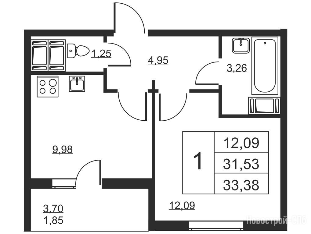 1-комн. квартира 33,10 м2 4 910 700