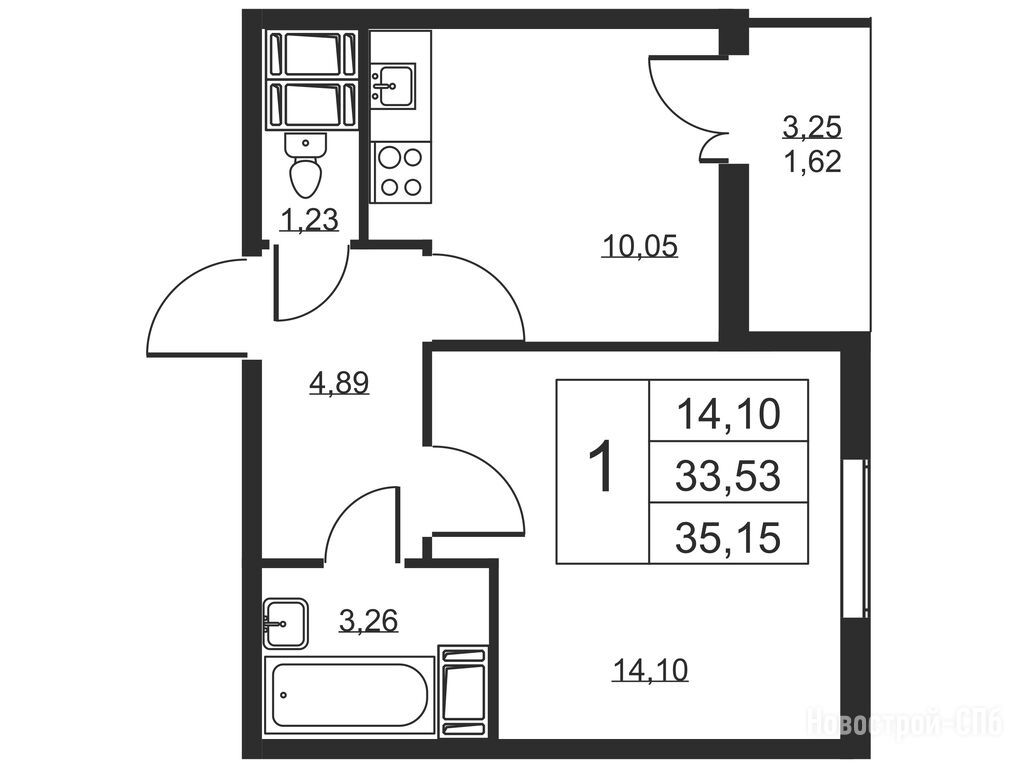 1-комн. квартира 33,10 м2 4 910 700