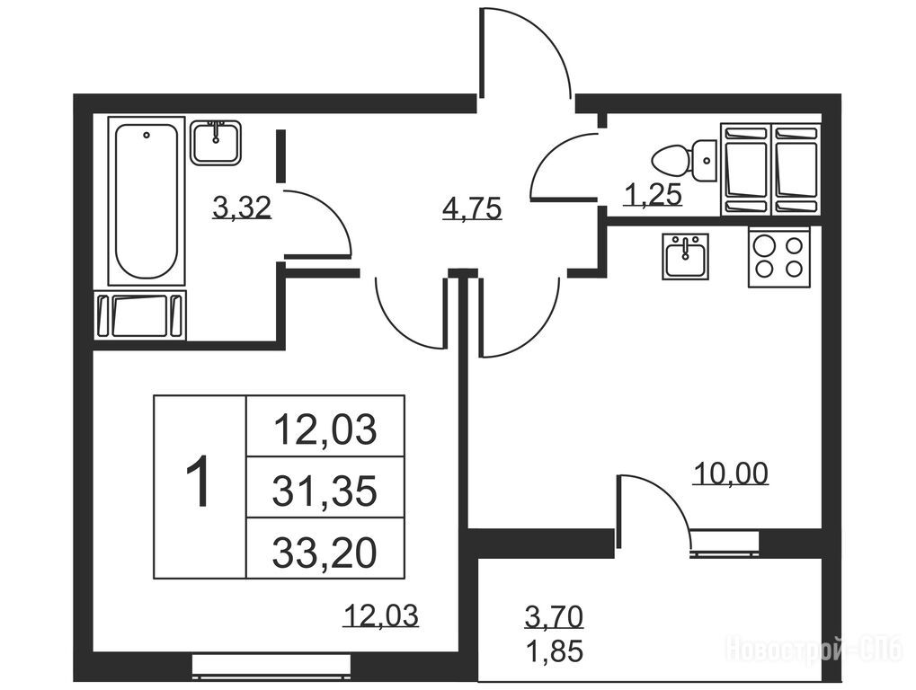 1-комн. квартира 33,10 м2 4 910 700