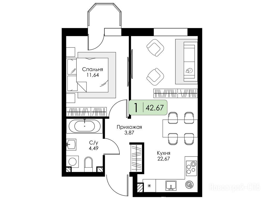 Продается однокомнатная квартира в новостройке ЖК «Всевгород» по адресу Ленинградская область, Всеволожский район, поселок Романовка, ЖК «Всевгород», корпус 1.1. Общая площадь квартиры - 42.67 кв. м. Тип проекта, по которому построен дом — Монолитно-кирпичный, компания-застройщик — Группа компаний «Консоль», ООО СЗ РОМАНОВКА 1. Стоимость квартиры — 6 741 860 руб. Способы оплаты можно уточнить у продавца. Срок сдачи — 4 квартал 2027. Более подробная информация по телефону.