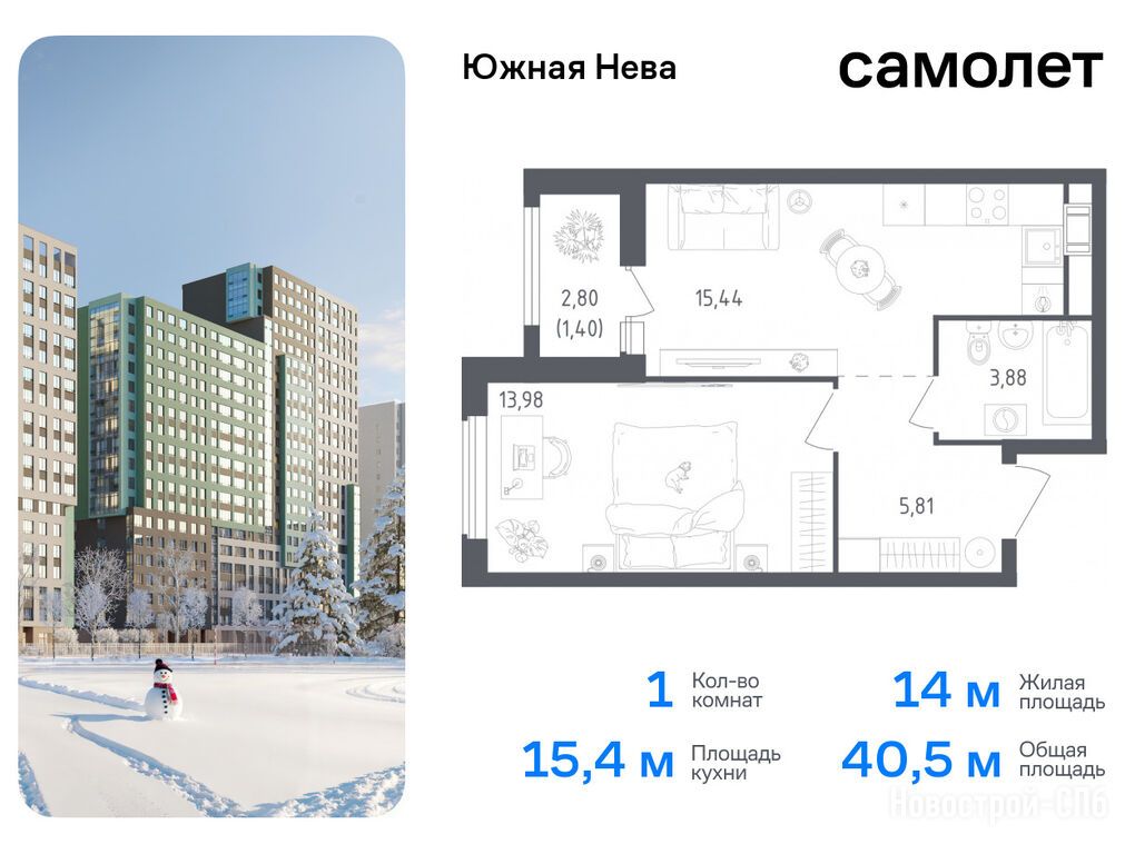 Продается однокомнатная квартира в новостройке ЖК «Южная Нева» по адресу Ленинградская область, Всеволожский район, Свердловское г. п., д. Новосаратовка корпус 2. Общая площадь квартиры - 40.51 кв. м. Тип проекта, по которому построен дом — Монолитно-кирпичный, компания-застройщик — Самолет. Стоимость квартиры — 6 814 103 руб. Способы оплаты можно уточнить у продавца. Срок сдачи — 4 квартал 2027. Более подробная информация по телефону.