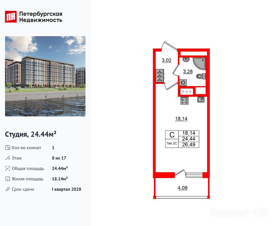 Продается студия в новостройке Setl Ривьера по адресу Санкт-Петербург, Невский, Октябрьская набережная (корп. 1.1). Общая площадь квартиры - 24.44 кв. м. Тип проекта, по которому построен дом — Монолитно-кирпичный, компания-застройщик — ООО «СЗ ПОТЕНЦИАЛ», Setl Group (Сэтл Групп). Стоимость квартиры — 8 900 205 руб. Способы оплаты можно уточнить у продавца. Срок сдачи — 1 квартал 2028. Более подробная информация по телефону.