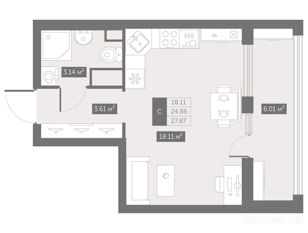 Продается студия в новостройке UP-квартал «Новый Московский» по адресу Санкт-Петербург, Пушкинский, Шушары пос., ЖК UP-квартал «Новый Московский» корп.6. Общая площадь квартиры - 27.87 кв. м. Тип проекта, по которому построен дом — Монолит, компания-застройщик — ГК ФСК. Стоимость квартиры — 4 118 155 руб. Способы оплаты можно уточнить у продавца. Срок сдачи — 1 квартал 2027. Более подробная информация по телефону.