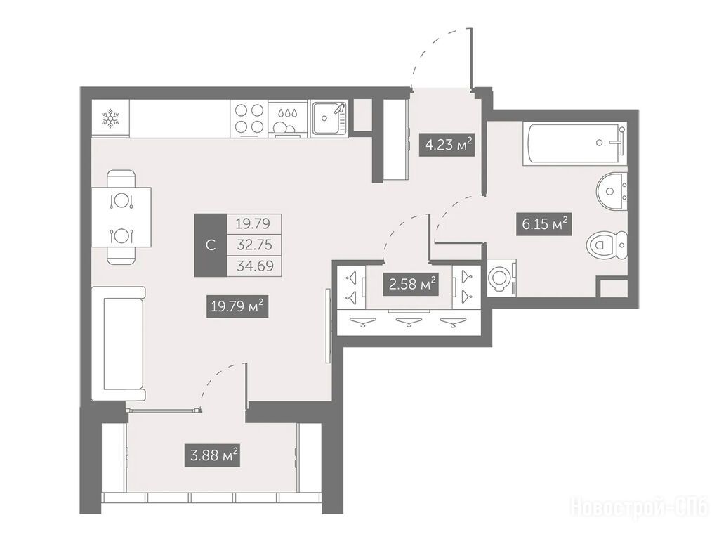 Продается студия в новостройке Квартал «Новый Московский» по адресу Санкт-Петербург, Пушкинский, Шушары пос., ЖК UP-квартал «Новый Московский» корпус 4. Общая площадь квартиры - 34.69 кв. м. Тип проекта, по которому построен дом — Монолит, компания-застройщик — ГК ФСК. Стоимость квартиры — 5 412 681 руб. Способы оплаты можно уточнить у продавца. Срок сдачи — 4 квартал 2027. Более подробная информация по телефону.