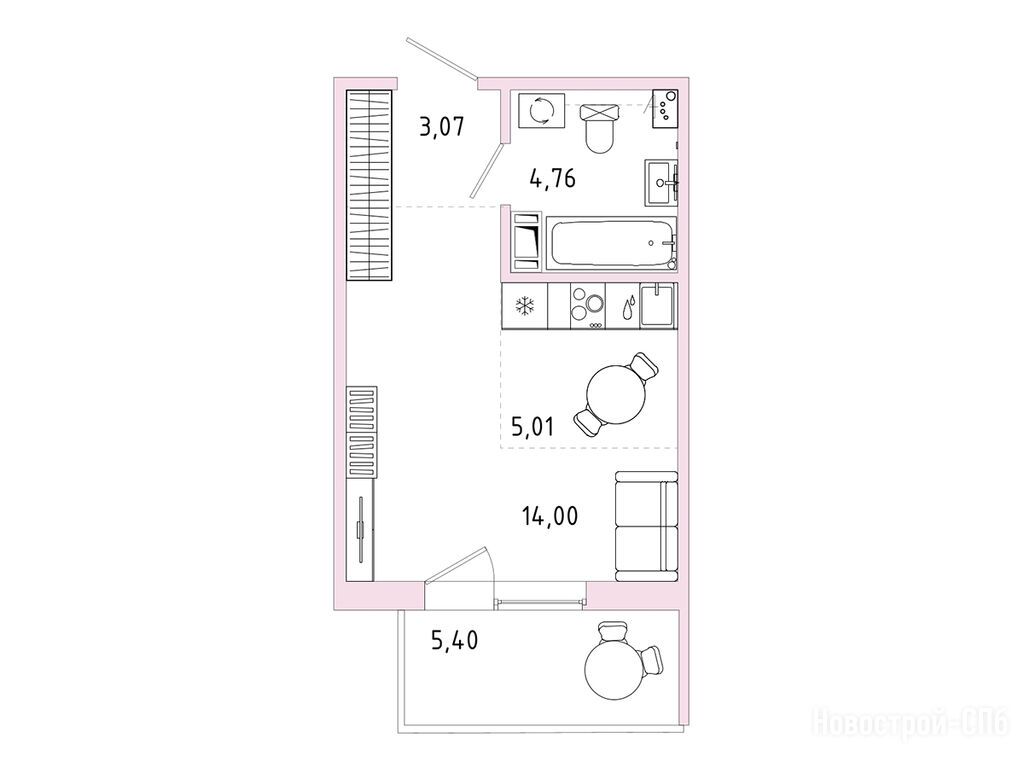 студия, 28.46 м2, 7 этаж