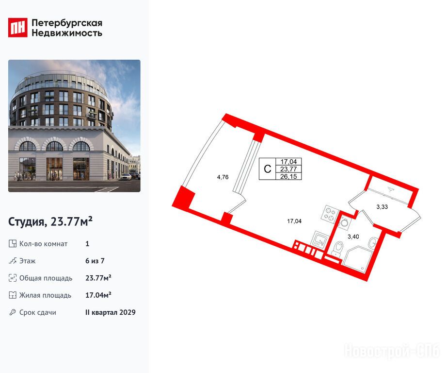 Продается студия в новостройке ЖК «Аристократ» по адресу Санкт-Петербург, Василеостровский, 26-я линия В.О., д. 1, литера А, корпус 4. Общая площадь квартиры - 23.77 кв. м. Тип проекта, по которому построен дом — Монолитно-кирпичный, компания-застройщик — Setl Group (Сэтл Групп), СЗ «Остров Сити». Стоимость квартиры — 16 900 470 руб. Способы оплаты можно уточнить у продавца. Срок сдачи — 2 квартал 2029. Более подробная информация по телефону.